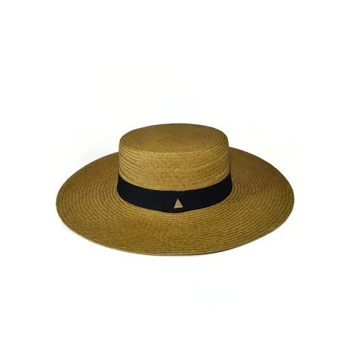 Sombrero Panamá ala ancha Camila tostado con tira negra