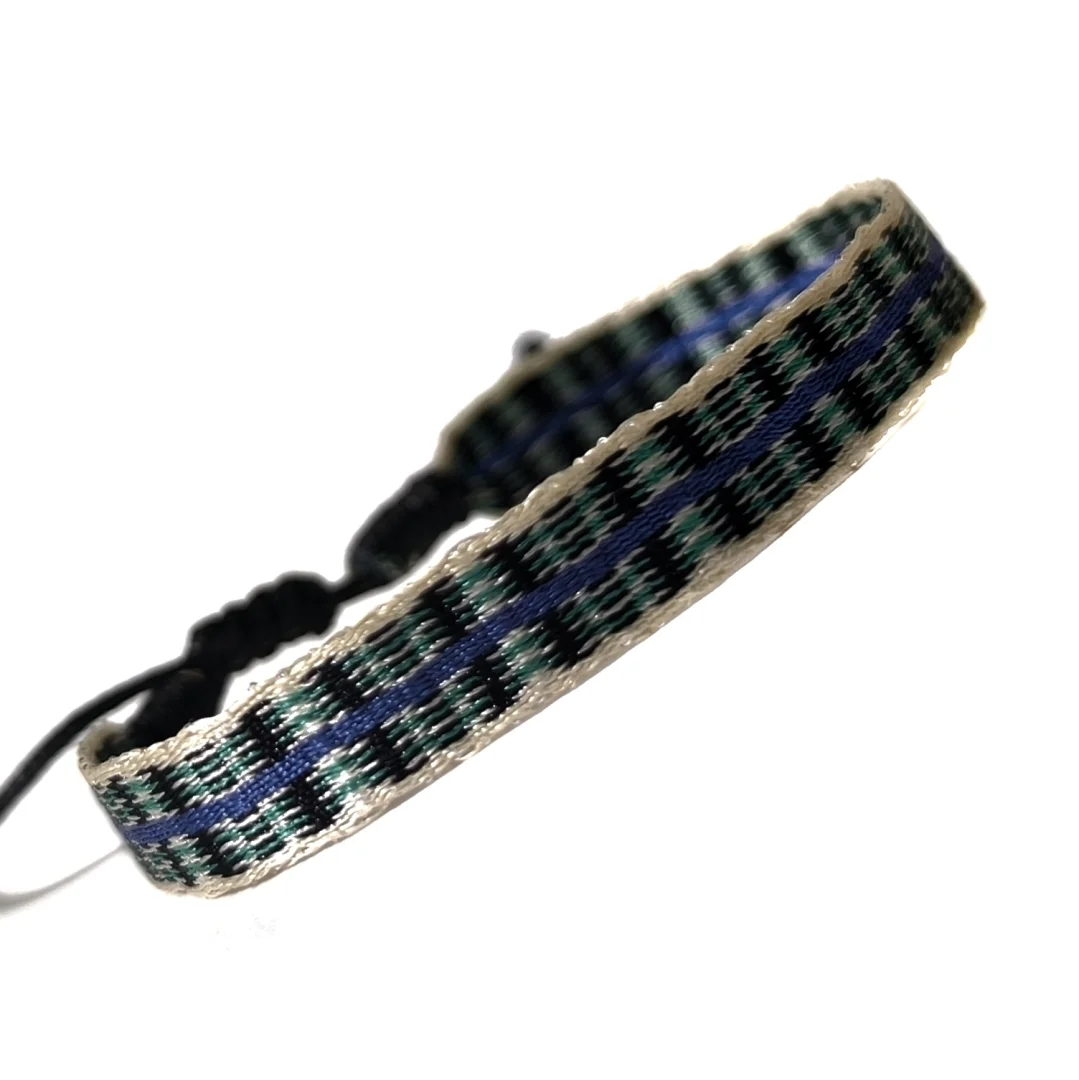 Pulseras hechas a mano en Colombia, tejidas en telar tradicional con hilos de seda. Son piezas ligeras, prácticas y resistentes, perfectas para el día a día.