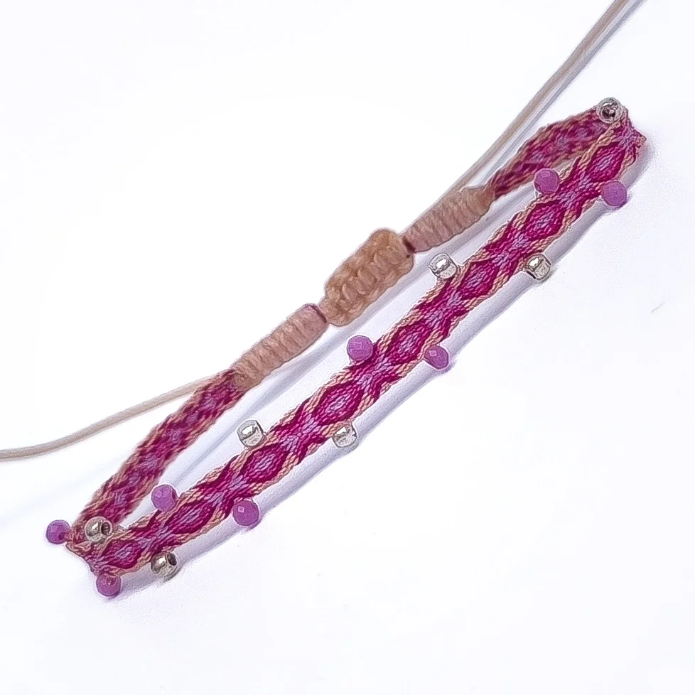 Pulseras hechas a mano en Colombia, tejidas en telar tradicional con hilos de seda. Son piezas ligeras, prácticas y resistentes, perfectas para el día a día.
