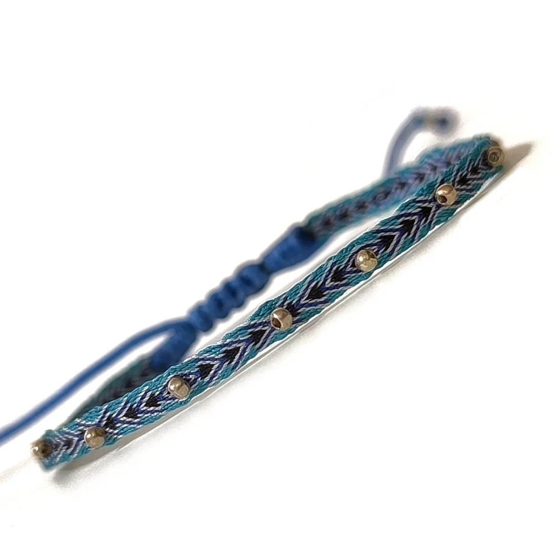 Pulseras hechas a mano en Colombia, tejidas en telar tradicional con hilos de seda. Son piezas ligeras, prácticas y resistentes, perfectas para el día a día.