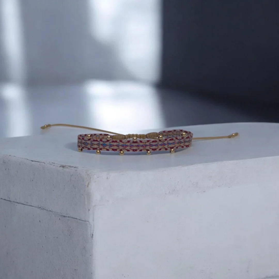 Pulseras hechas a mano en Colombia, tejidas en telar tradicional con hilos de seda. Son piezas ligeras, prácticas y resistentes, perfectas para el día a día.
